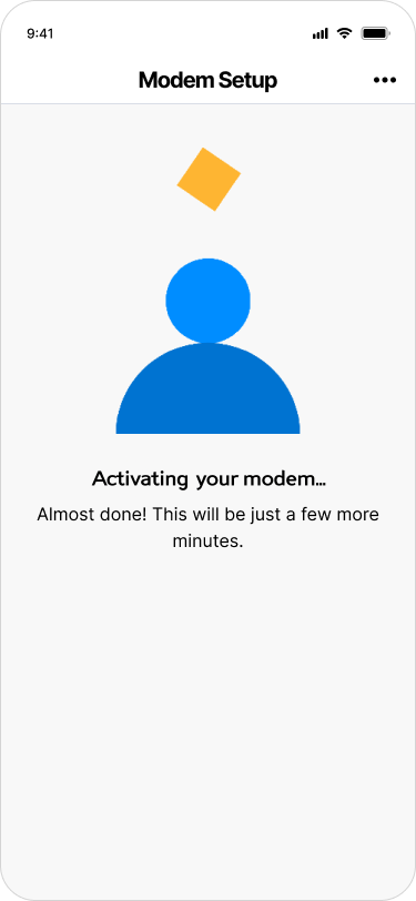 I designed a new progress bar component to visualize progress for users even when precise activation time estimates weren't possible. The progress bar moved at variable speeds, faster for the 95% of customers with normal wait times, and slower for the 5% experiencing longer delays, giving all users confidence that the process was working.